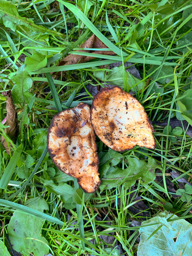 Die Unterseite zeigt Farben von rot/weiß. Sie sind angewachsen.