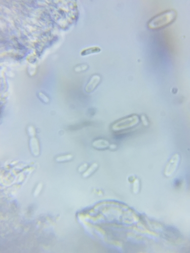 Er hat einen bitteren Geschmack. Das Sporenpulver ist weiß.