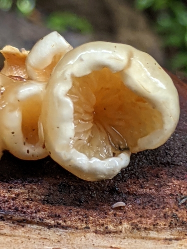 Die Unterseite zeigt Farben von gelb/orange/braun. Sie sind angewachsen.